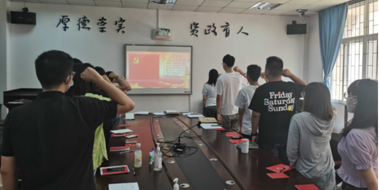 在本次主题党日活动中,别梓雯首先通报了党员到会情况和党员缴纳党费情况,并带领支部成员重温了入党誓词,学习了党章第一章相关内容。