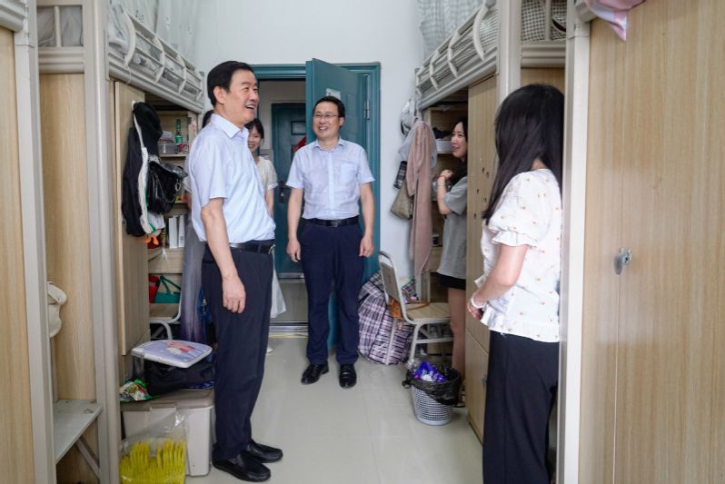 徐雁冰还来到黄家湖校区北11-337和319宿舍,对暑期留校员工表示亲切慰问和关心。他与员工亲切交谈,了解员工暑期安排、专业学习情况、宿舍生活环境、室友日常相处等情况,并鼓励员工要营造良好的宿舍环境,让宿舍成为学习之地,珍惜校园美好时光,勤奋刻苦学习,不负青春,不负韶华。