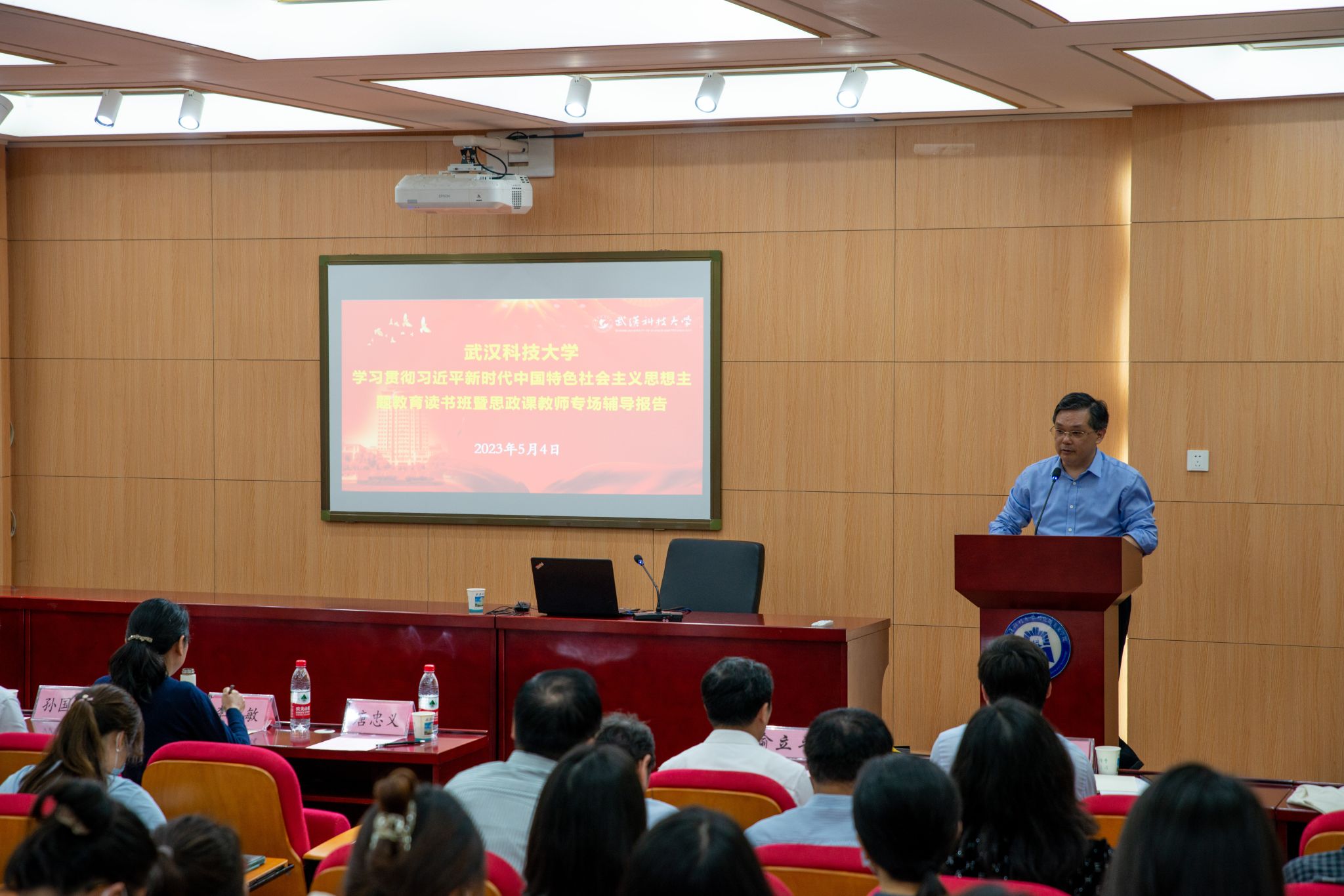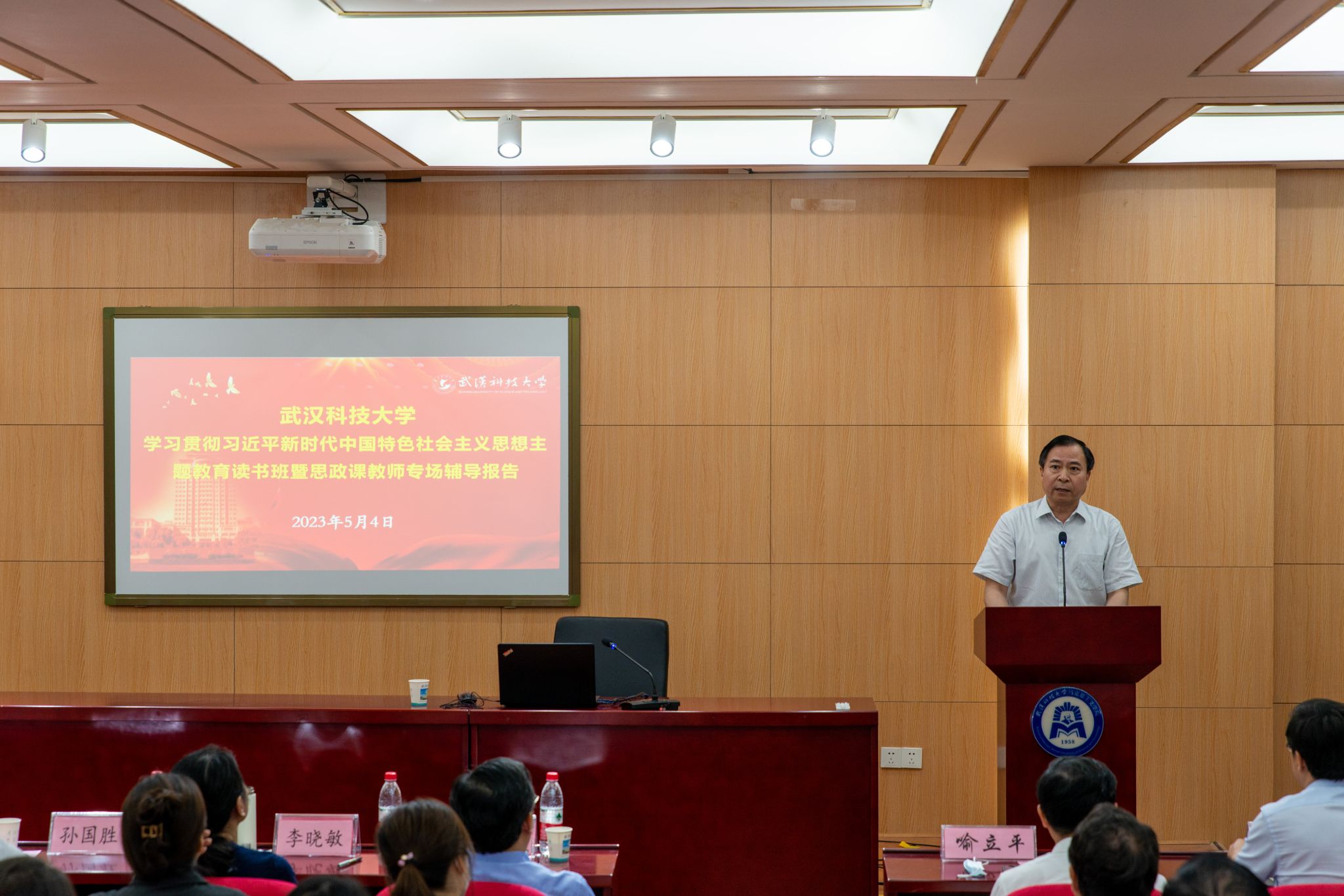 本网讯(通讯员郭海沙 摄影王永琦)5月4日下午,公司学习贯彻习近平新时代中国特色社会主义思想主题教育读书班暨思政课教师专场辅导报告在黄家湖校区教四楼41101报告厅举行。湖北省人大常委会教科文卫委员会副主任喻立平作专题辅导报告。公司党委副书记孙国胜,公司党委常委、副董事长吕勇,公司部分中层干部、yl6776永利集团官网全体师生参加了报告会,报告会由公司党委书记唐忠义主持。