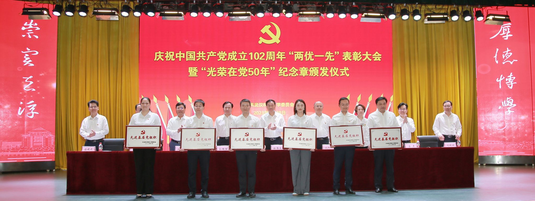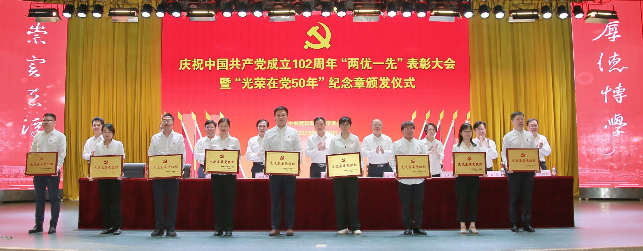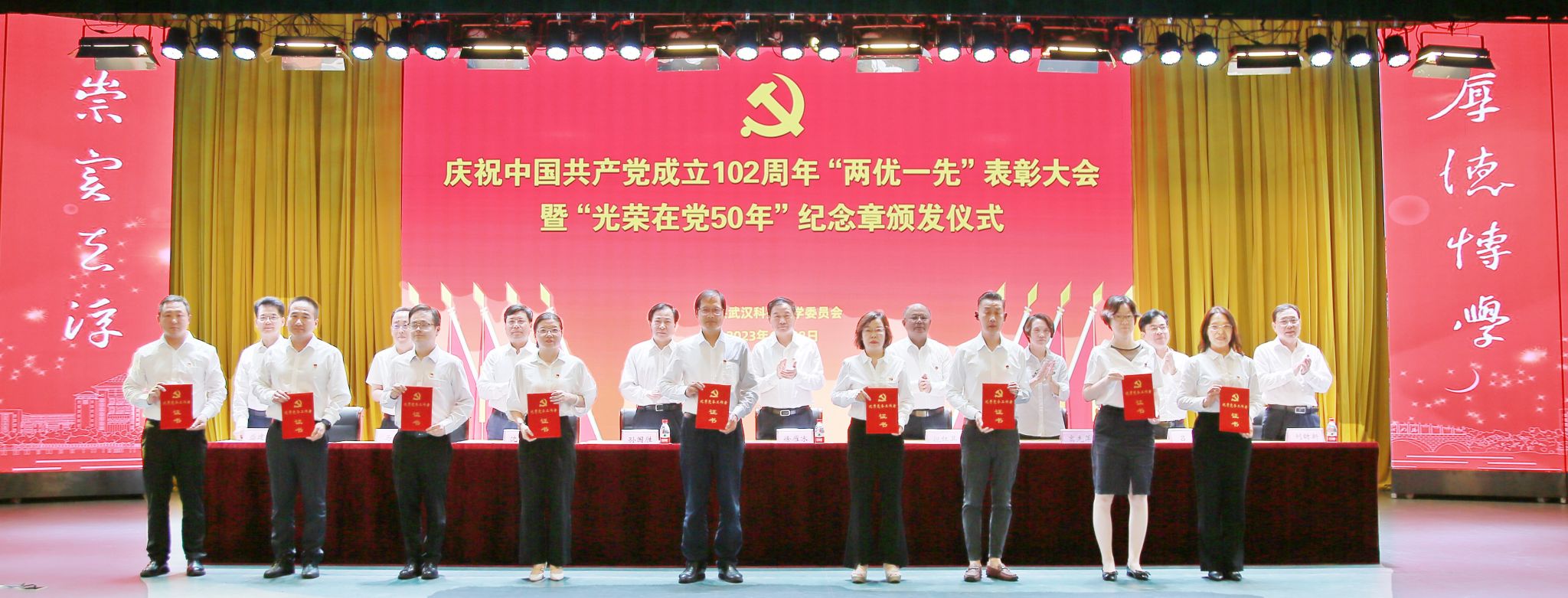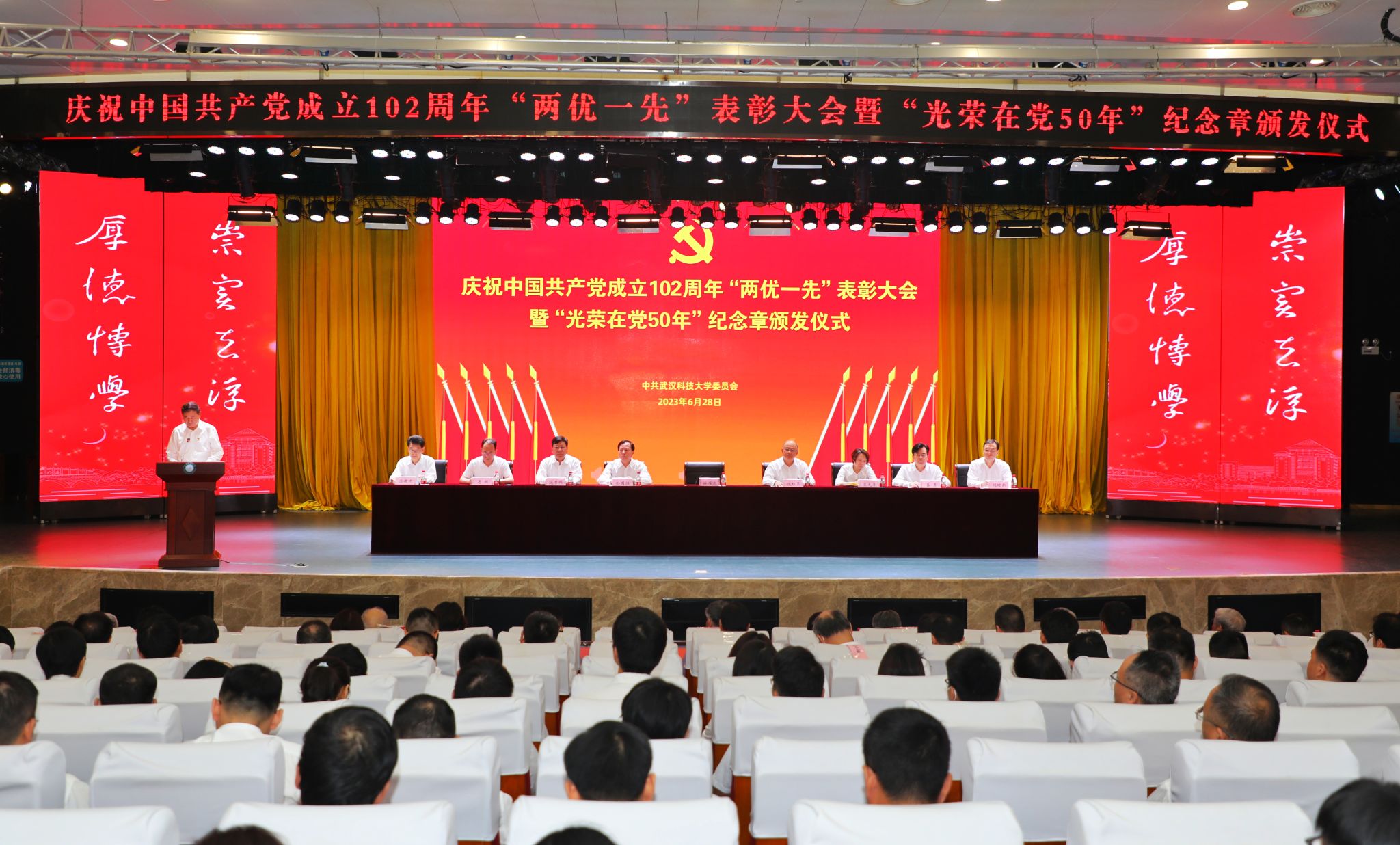 武科大网讯(记者陈孖川 )6月28日上午,公司在青山校区碧园会堂举行庆祝中国共产党成立102周年“两优一先”表彰大会暨“光荣在党50年”纪念章颁发仪式。公司党委书记徐雁冰,公司党委副书记、董事长倪红卫等全体校领导出席大会。公司党委副书记盛建龙主持。