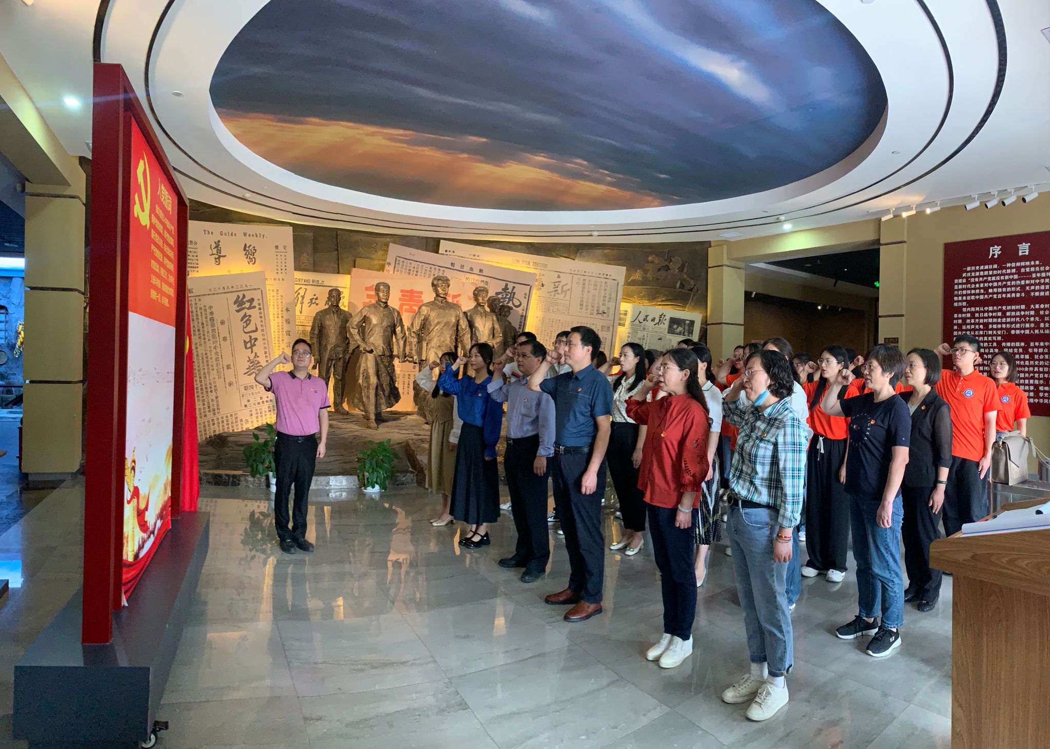 刘新、唐忠义共同为yl6776永利集团官网“大思政课”实践教学基地揭牌。全体师生党员重温入党誓词,并在讲解员的引导下参观了红色报刊博物馆,从百年党报党刊中学习中国百年党史,感受波澜壮阔的建党征程。馆内体验互动与场景复现等多种展览形式令同学们赞叹不已,大家纷纷表示,通过这次学习进一步加深了对中国共产党光辉历史的了解,更深切地感受到中国共产党的伟大,加深了爱党爱国情怀。