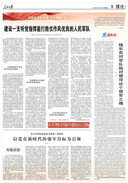 习近平新时代中国特色社会主义思想,明确党在新时代的强军目标是建设一支听党指挥、能打胜仗、作风优良的人民军队,把人民军队建设成为世界一流军队。深入学习贯彻习近平新时代中国特色社会主义思想,必须深入学习领会、全面贯彻落实习近平强军思想,铸牢党对军队绝对领导这个强军之魂,把新时代强军事业不断推向前进。《建设一支听党指挥能打胜仗作风优良的人民军队》《铸牢党对军队绝对领导这个强军之魂》《把人民军队建设成为世界一流军队 以党在新时代的强军目标为引领》(点击标题查看全文)围绕这一主题进行阐述。