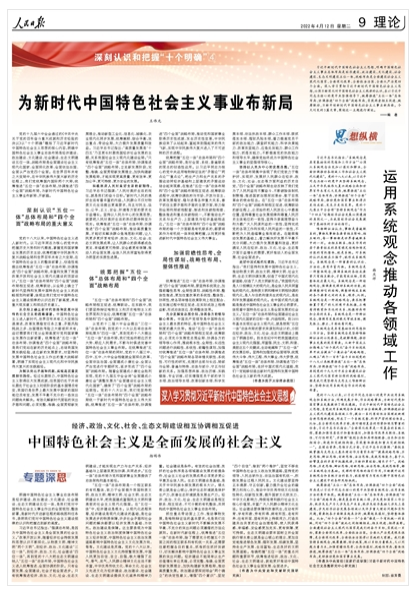 习近平新时代中国特色社会主义思想,明确中国特色社会主义事业总体布局是经济建设、政治建设、文化建设、社会建设、生态文明建设五位一体,战略布局是全面建设社会主义现代化国家、全面深化改革、全面依法治国、全面从严治党四个全面。深入学习贯彻习近平新时代中国特色社会主义思想,必须不断深化对中国特色社会主义规律的认识,在以习近平同志为核心的党中央坚强领导下,统筹推进“五位一体”总体布局、协调推进“四个全面”战略布局,实现两者相互促进、统筹联动,不断开创新时代中国特色社会主义事业新局面。《为新时代中国特色社会主义事业布新局》《运用系统观念推动各领域工作》《经济、政治、文化、社会、生态文明建设相互协调相互促进 中国特色社会主义是全面发展的社会主义》(点击标题查看全文)围绕这一主题进行阐述。