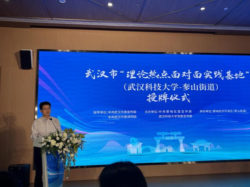 本网讯(通讯员郭海沙)4月19日,yl6776永利集团官网—武汉市蔡甸区奓山街“理论热点面对面实践基地”授牌仪式在蔡甸区奓山街道举行。公司党委副书记盛建龙、党委宣传部常务副部长李晓敏、公司党委书记唐忠义和yl6776永利集团官网刘勇教授出席了授牌仪式。市委宣传部副部长、市社科联主席吴天勇,市委讲师团主任刘强,蔡甸区委常委、宣传部长史玉菡,蔡甸区委常委、统战部长、蔡甸经济开发区(奓山街道)党工委书记许永周,奓山街道党工委副书记、办事处主任周大恩参加了此次活动。
