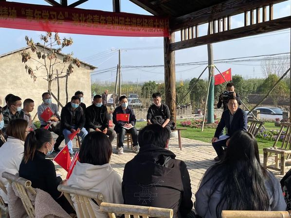 “青年学习会”集中宣讲结束后,省青年宣讲团成员还走进彭场镇大岭村、到田间地头与青年、团员开展“青年面对面”交流宣讲。