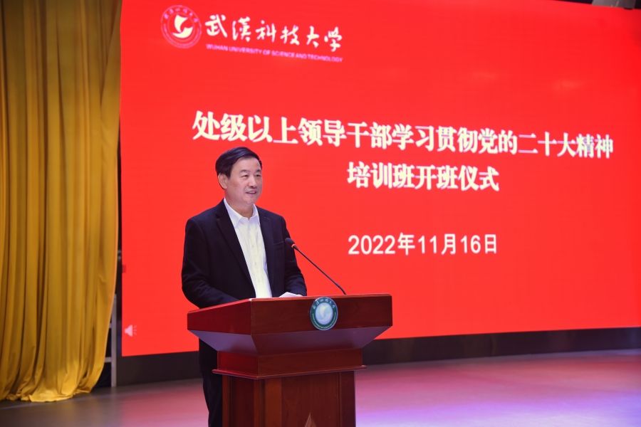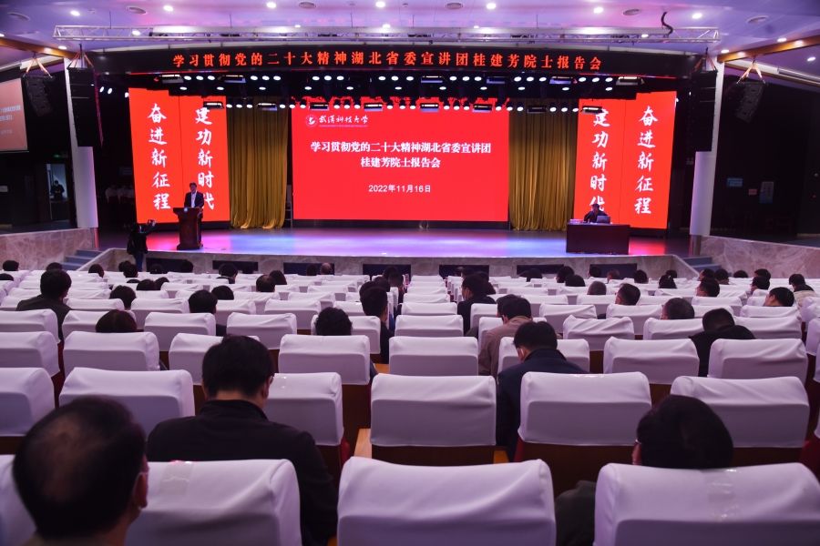 武科大网讯(记者陈孖川)11月16日上午,学习贯彻党的二十大精神湖北省委宣讲团报告会暨处级以上领导干部学习贯彻党的二十大精神培训班开班仪式在青山校区碧园会堂举行。省委宣讲团成员、中国科公司院士、发展中国家科公司院士桂建芳院士作题为《学习党的二十大精神,自信自强、守正创新,为党育人、为国育才,做科教兴国的主力军》的宣讲报告。公司党委书记徐雁冰主持会议。