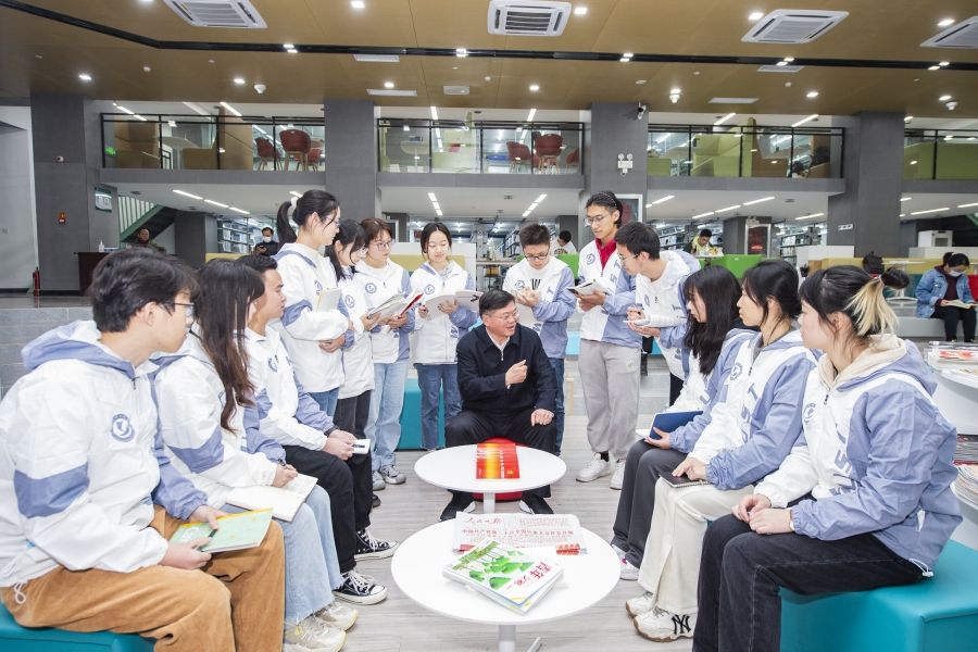 宣讲结束后,桂建芳前往青山校区图书馆二楼与公司学子交流,鼓励员工要努力学习、勤奋钻研,在科研上走得更远、做得更深。
