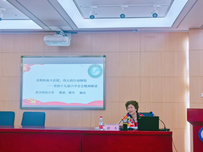 顾杰从“清醒认识十九届六中全会的历史方位”、“准确把握十九届六中全会的核心要义”、“全面贯彻十九届六中全会的实践要求”三个方面详细解析了党的十九届六中全会精神。
