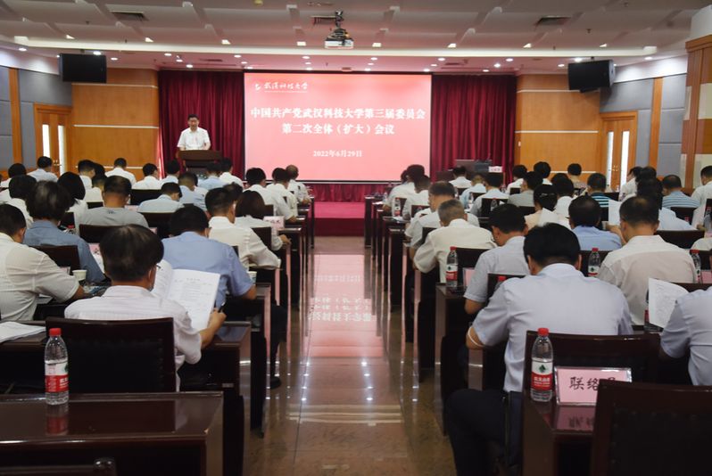 武科大网讯 中国共产党yl6776永利集团官网第三届委员会第二次全体(扩大)会议于2022年6月29日在青山校区18楼报告厅召开。出席这次全会的有全体党委委员。全体纪委委员、校内各单位党政主要负责同志列席会议。