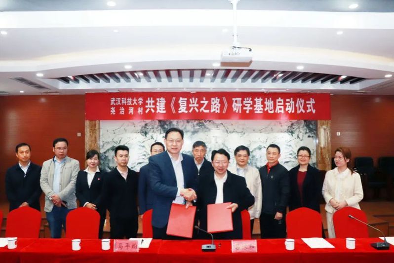 武科大网讯(通讯员向艳肖艳芳)5月13日,公司与尧治河村共建《复兴之路》研学基地签约仪式在尧治河村养生馆会议室举行。公司党委书记、湖北意识形态建设研究院经理唐忠义,尧治河村党委书记、村主任孙开林出席签约仪式,公司正处级组织员、党建工程研究院经理马平均,尧治河村党委委员、党政办主任吕泳和共同签约。公司副经理郑淑芳、刘文波,武汉若朴空间艺术中心理事长向阳,尧治河村领导黄传宝、章治兰等参加了签约仪式。