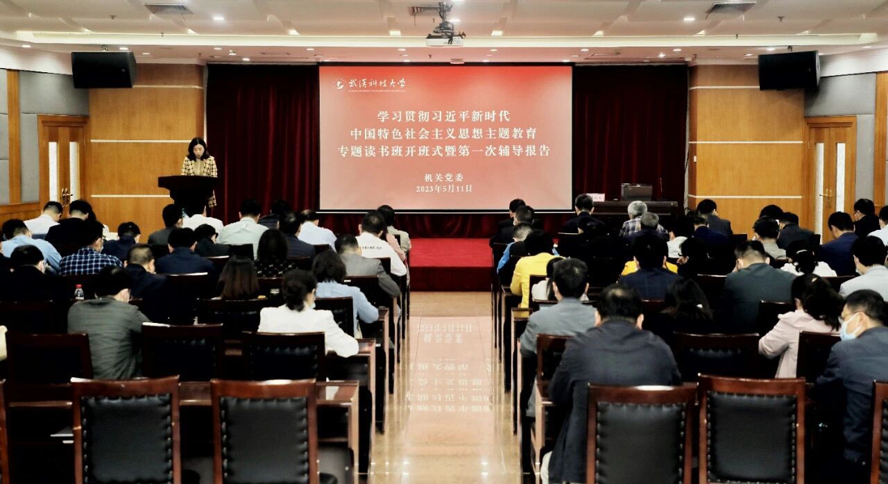 5月11日,机关党委在青山校区主楼18楼报告厅举行学习贯彻习近平新时代中国特色社会主义思想主题教育专题读书班开班式暨第一次辅导报告会。公司党委常委、组织部部长刘时新,机关党委全体处级领导干部、党员代表参加会议。湖北省委宣讲团成员、湖北意识形态建设研究院经理、公司党委书记唐忠义教授作专题辅导报告。会议由机关党委书记郑娟主持。